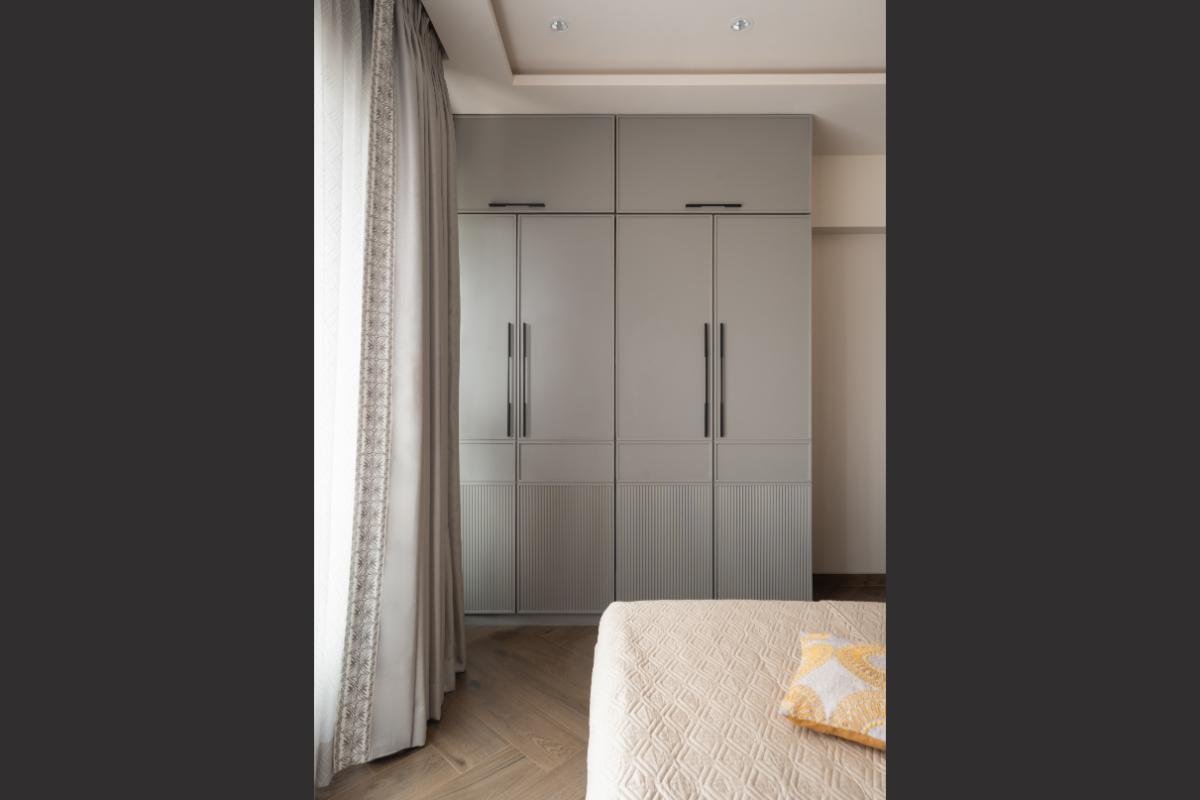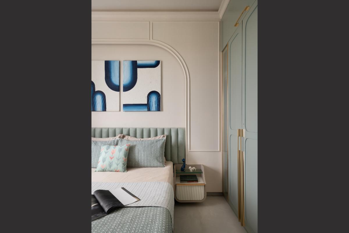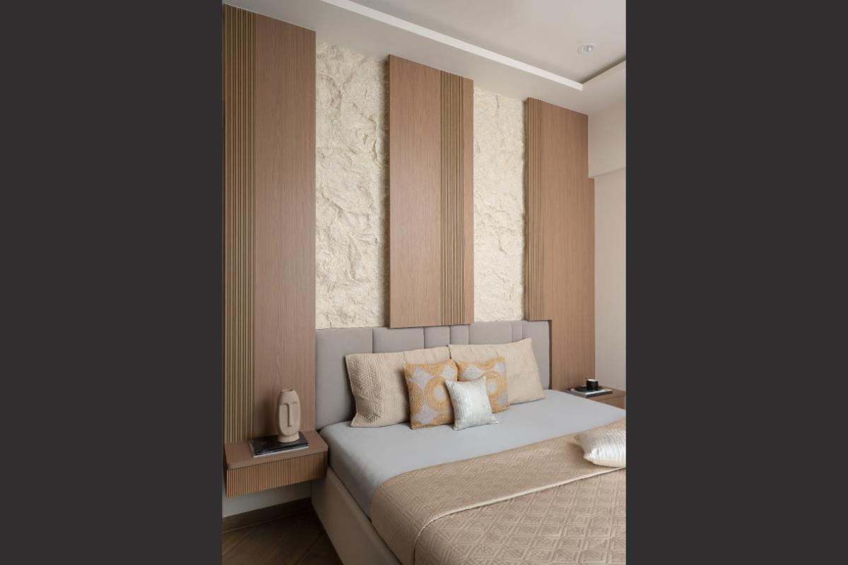 - Talking about the bedrooms each room was articulated through custom mood boards, keeping a sense of individual personalities, but at the same time blending well with the overall aesthetics of the house. One can see accent brass strips, gold shimmer in texture, finishing material as lacquered glass, etc adding in the Lux factor to the overall space.