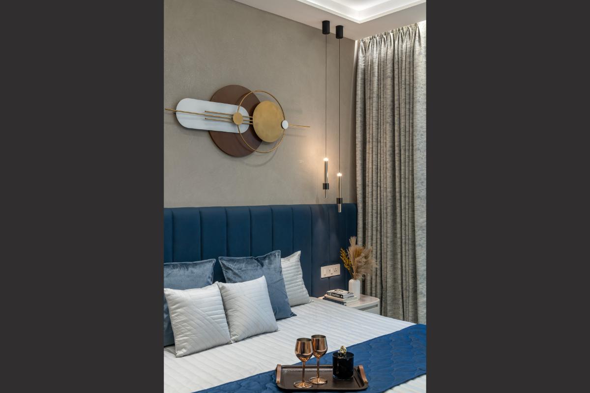 - Bedroom 01: Features warm beige tones for a cozy atmosphere, juxtaposed with deep blue tones, adding a dash of vibrancy to the space.